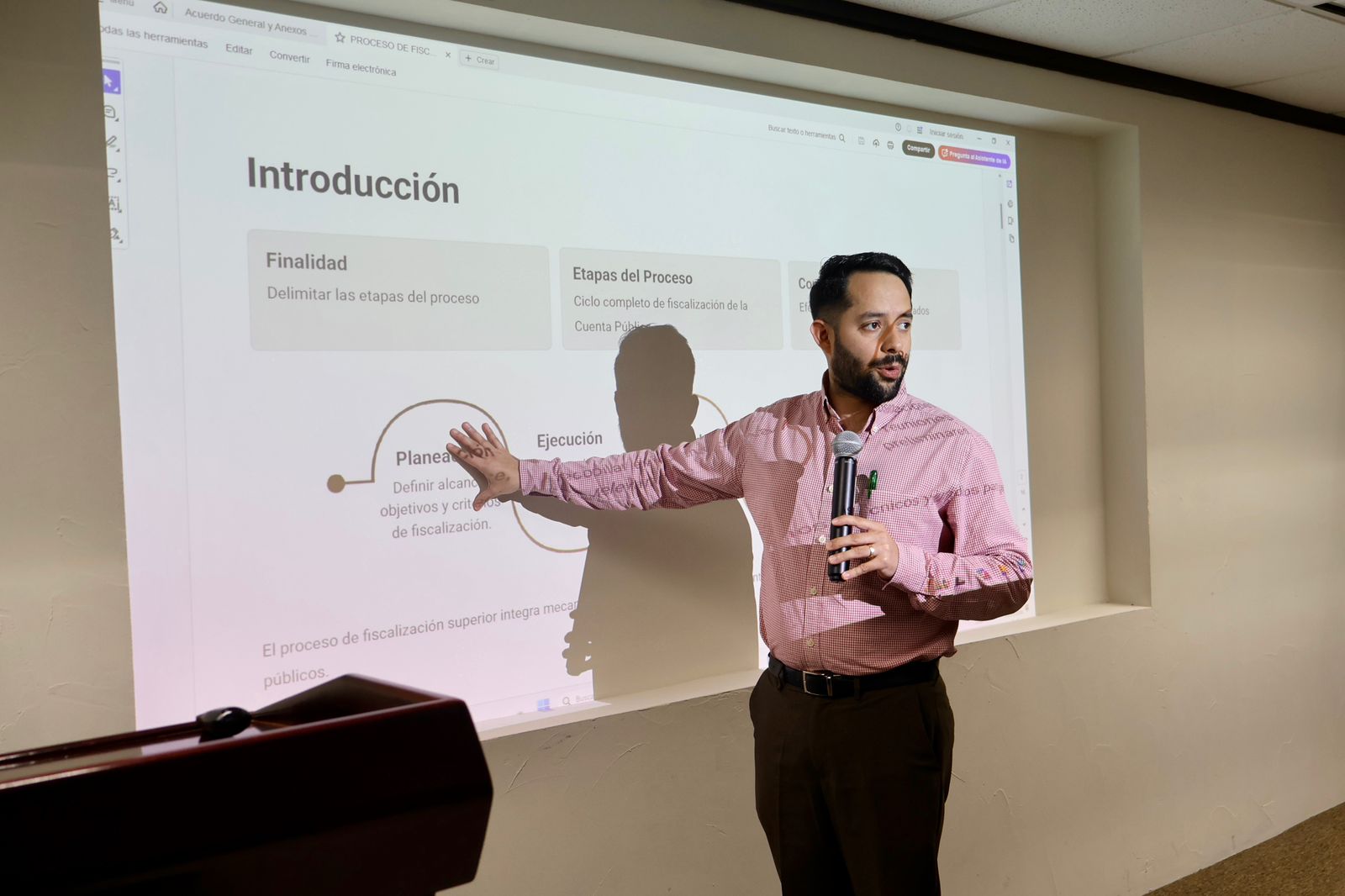 Durante la jornada, auditores, directores y personal especializado de la Auditoría Superior del Estado presentaron los principales lineamientos del Acuerdo General 2026 y del marco de responsabilidades derivadas de la fiscalización superior, con el objetivo de fortalecer la correcta aplicación de los procesos establecidos y el cumplimiento de la normatividad en el ejercicio de los recursos públicos.